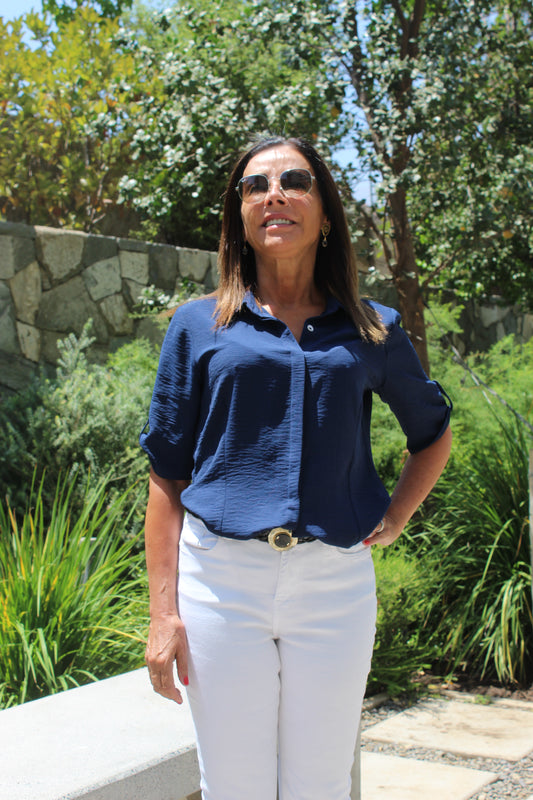Precio habitual $48.900 CLPPrecio habitualPrecio unitario / por$58.900 CLPPrecio de oferta $48.900 CLPBlusa Crep Azul Marino