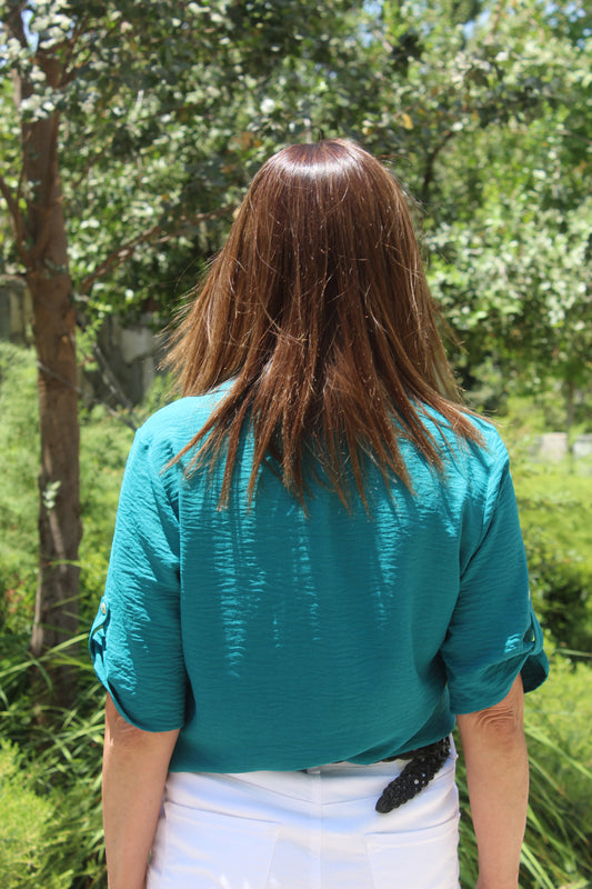 Precio habitual $58.900 CLPPrecio habitualPrecio unitario / por$68.900 CLPPrecio de oferta $58.900 CLPBlusa Crep Verde con Bordado